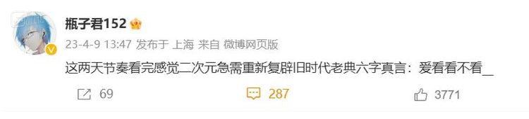 至于“名著中同样存在争议情节”,则是老生常谈的经典话题,二次元作品不应该也没有必要与文学名著相比,强行将两类评判体系不同的作品混为一谈只会走向鸡同鸭讲的怪圈,白白浪费大家的键盘耐久度。