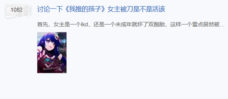 这些天,另一部浑身上下都是雷点的作品《我推的孩子》正式开播,有别于《天国大魔境》,本作涉及了16岁怀孕、潜规则、开盒、当场刀人以及各类娱乐圈见不得光的内容的大合集,于是,大家的兴致产生了转移,开始忙着对《我推的孩子》大批特批。
