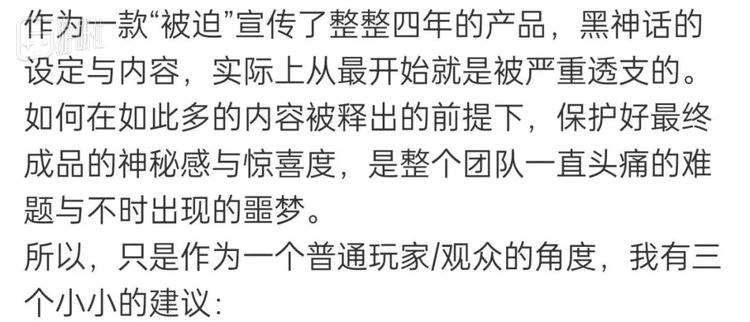 也就是说,游戏科学在尽最大的力量,来让《黑神话》的内容自然有序地呈现给大众玩家。试图在这个信息最发达的时代,达成一定限度内的“全网无剧透”。