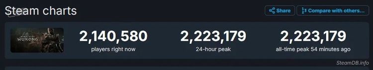 今天《黑神话》已经成为了Steam史上同时在线人数最高的单机游戏。