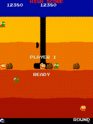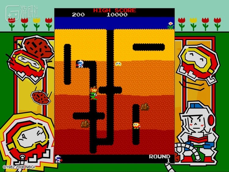 8bit的噩梦影响还没完,来看南梦宫的另一款游戏《打空气》(Dig Dug)。