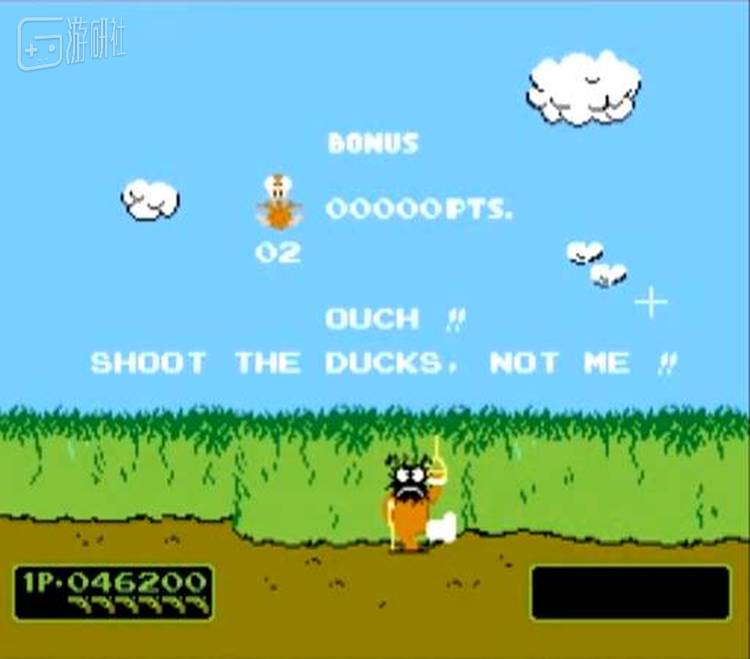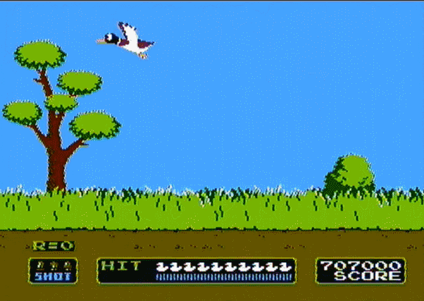 上面这些街机游戏也都有FC版,基本上跟街机一样,到了那个地步就卡关。当时专门给FC开发的游戏也有毛病,最有名的当属《打鸭子》(Duck Hunt)。