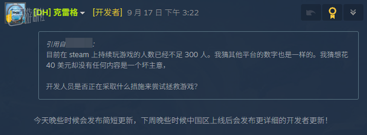 以至于不少花了真金白银买游戏的玩家都忍不住支招,在论坛上反复呼吁官方开启“免费试玩”活动、给游戏一些大折扣或者干脆转型成免费+内购的游戏模式,能看出来大伙是真的着急了。