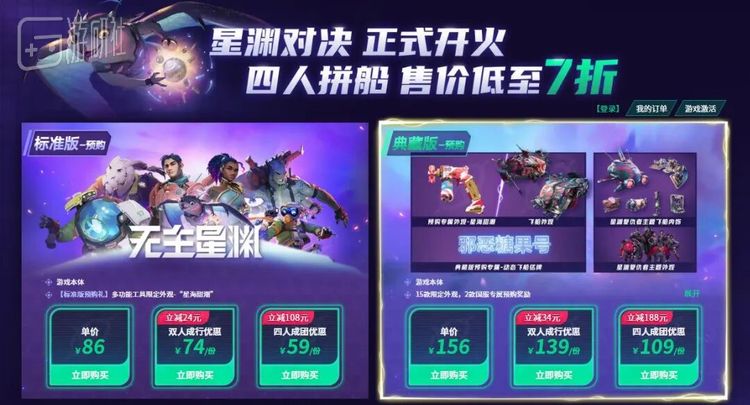 相较而言,即将上线的国服就“上道”的多:不光摆出了86元的全球最低价,还特别提供了低至人均59元的“拼团折扣”。国际服的单人价格在国服近乎可以“包团”,拉好友入坑的门槛一下子就降低了。