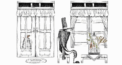乌鸦先生接过花朵,放在了鸟笼中。他决定出去走走。他发现,他的世界开始有了红色的砖瓦。