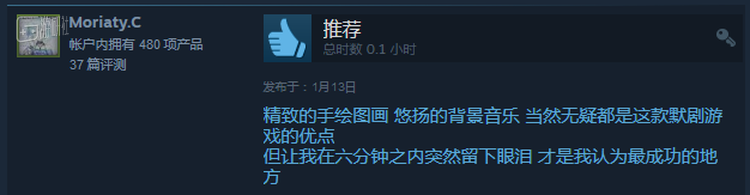 评论中被点赞最多的一位朋友评价说:精致的手绘图画、悠扬的背景音乐当然无疑都是这款默剧游戏的优点;但让我在六分钟之内突然留下眼泪,才是我认为最成功的地方。