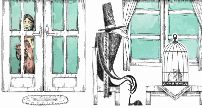 回到家中,坐在椅子上的乌鸦先生看着笼中彩色的花朵、绿叶和枝干,他伸出了手,却发现它们忽然消失不见。屋子中又只剩下了没有颜色的乌鸦先生,和装着石块的鸟笼。