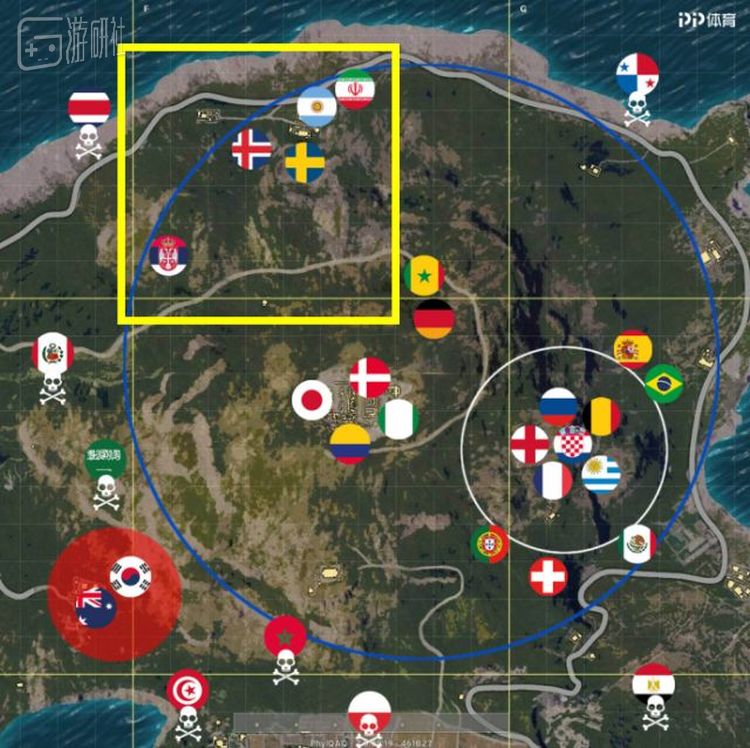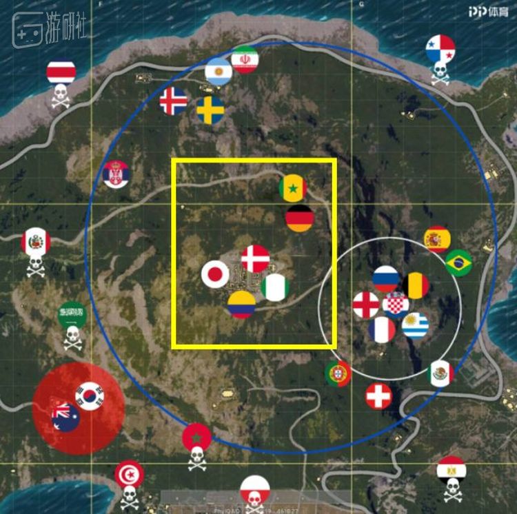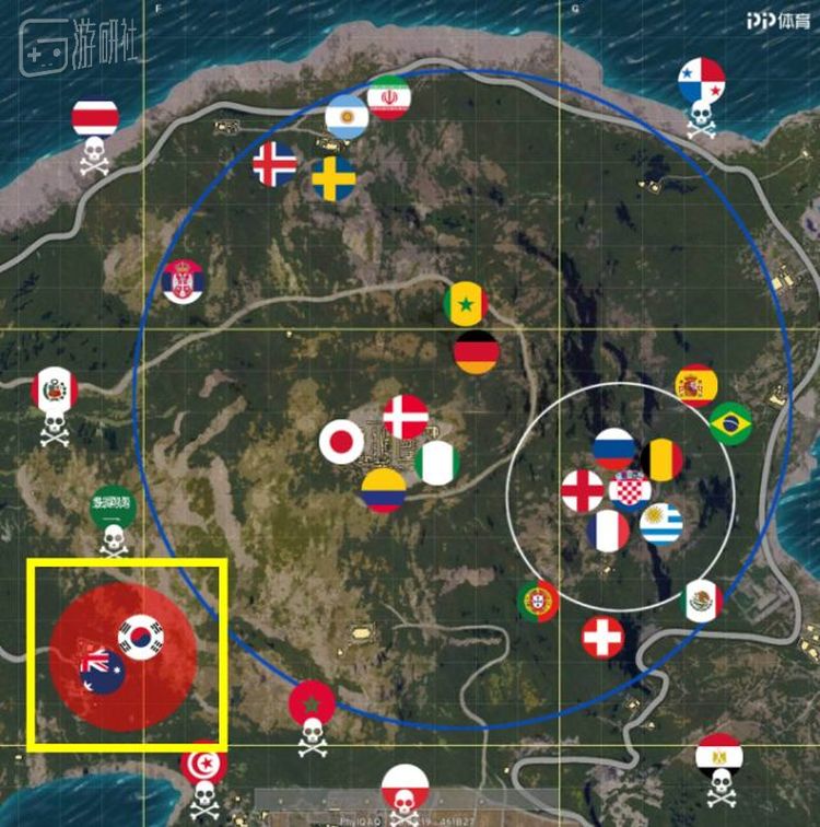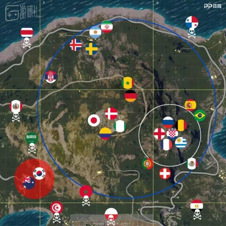 而今天,微博上有一个叫“PP体育”的机构抛开那些繁冗的数据,依据《绝地求生》的地图制作了一张出线形势图,相比之下非常浅显易懂。