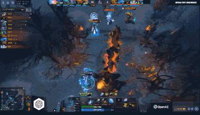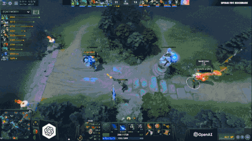 在当天进行的四场比赛中,第一场由OpenAI对阵现场观众。结果毫无悬念:5分钟拿下中路一塔,6分钟中路二塔,9分钟上高地,10分钟破一路,12分钟两路,13分钟直接GG。AI暴风骤雨般的进攻节奏与犀利的技能衔接打得上来凑热闹的观众基本没有还手余地。