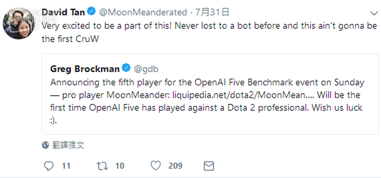 虽说从阵容的纸面实力上来看,人类明星队距离世界顶尖还有一定的差距,但人均7000分的水平放在普通路人里,也算是数量稀有的精英玩家了。而为了彰显高手的自信,收到邀请后,队中唯一的现役选手MoonMeander更是直接在Twitter上放话: