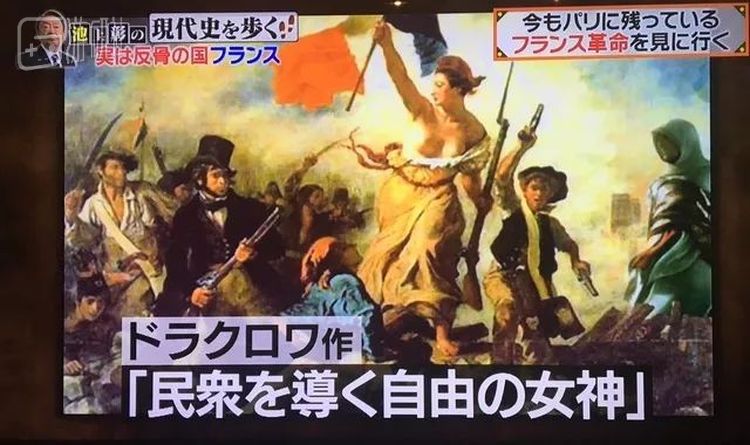 几天前,日本电视台播放了主持人池上彰讲述法国历史的节目,制作组引用了一张名画《自由引导人民》作为配图: