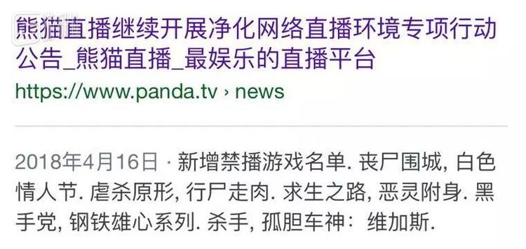 已故的熊猫直播曾发布过一批禁播游戏名单,《虐杀原形》在列