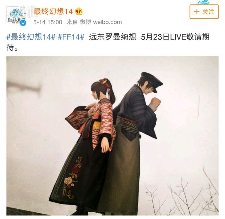 昨天,《最终幻想14》官方微博宣布,几天后将会公开一套被称为“远东罗曼绮想”(Taisho Roman)的时装。