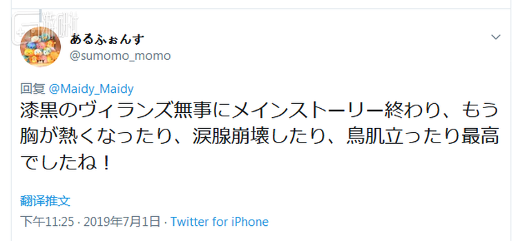“完成了《漆黑的反逆者》的故事。太棒了。传奇。评分10000/10。”