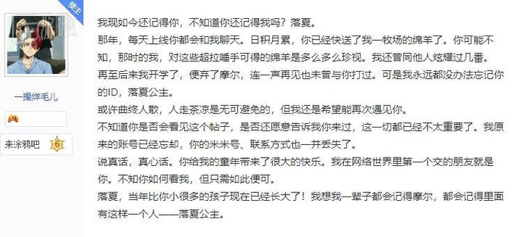在《摩尔庄园》的贴吧里,我见过近乎无数个寻人启事类的帖子。