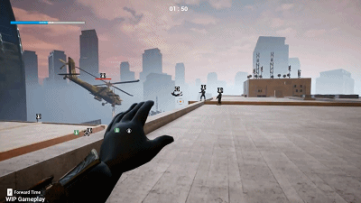 根据预告片里的内容,不难看出这款游戏对于“停止时间”这部分还是有一些有趣的想法。和其它游戏里相较僵硬的“敌人全部不动”不同的是,《Time To Stop Time》里子弹和其它物体的行动也会一概被停止,玩家则能通过改变子弹轨迹等操作,来阻止敌人。