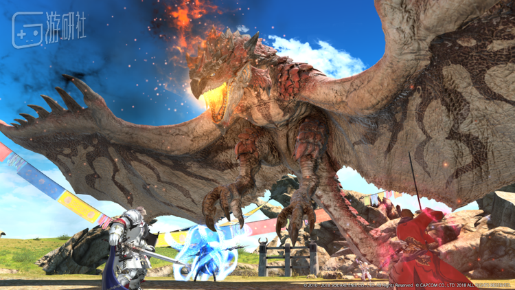 像是和《怪物猎人》的联动中,玩家这边还在推进“红莲之狂潮”的剧情,带领反抗军推翻帝国的统治,在正面战场上陷阵杀敌,那边就开始带着艾露猫和雄火龙充满激情地你来我往,双倍的挑战,双倍的快乐。