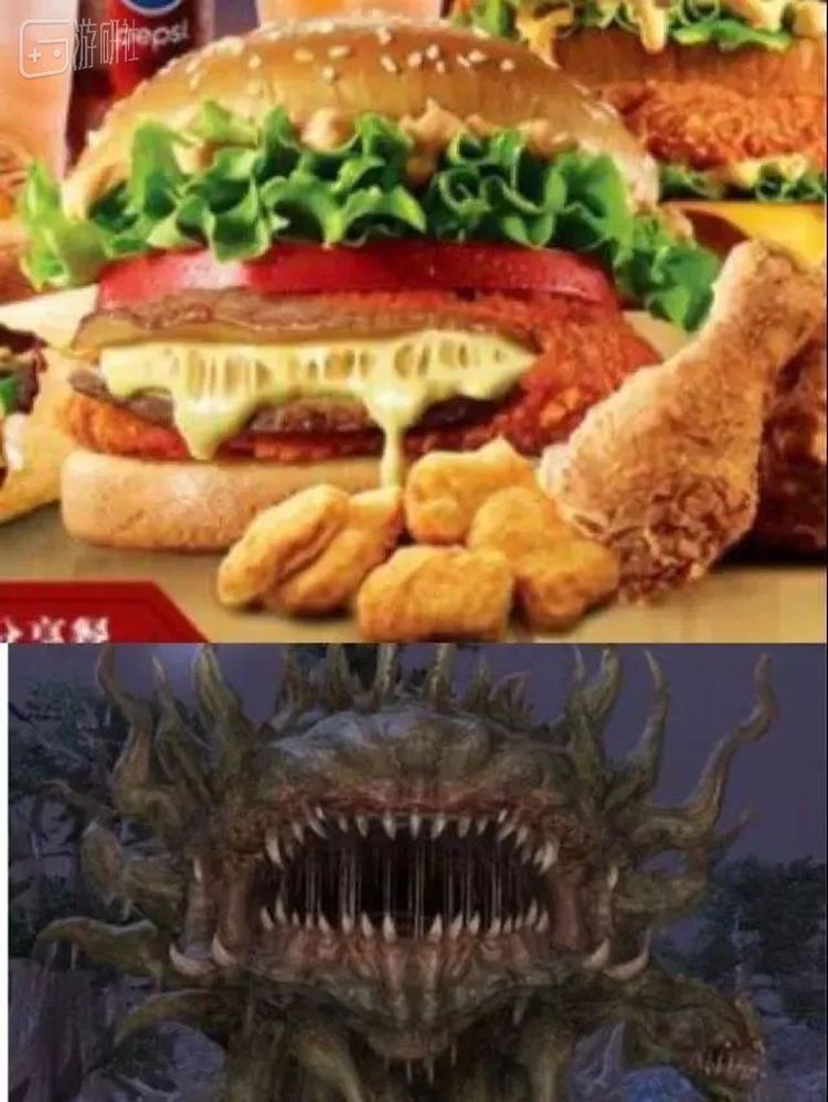数字次元的连接也就算了,这种角色扮演有的时候还会入侵到现实世界。像是前两年的“KFC黑鸡套餐”,当中有一款造型和口感都非常有趣味的蘑菇汉堡,就让光之战士们在现实中体验了一把和游戏里的怪物“魔界花”亲密接触的感觉。