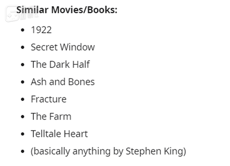 于是抛弃掉了一切平台、时间、游戏风格的束缚,他们把所有已知的可能答案都列在了一起。有那些在先前猜测里被否决的小制作独立游戏、《牧场物语》的小众Mod,甚至是史蒂芬金的小说《1922》,这本书讲述了一个男人杀掉妻子制造出她离家的假象以掩盖真相。