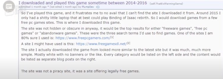 这个新的Reddit讨论组名字就叫“那个邪恶的种田游戏”,时至今日已经拥有了一万三千多名组员。所有玩家聚集在这里,分享线索、分享自己记忆中玩过的细节、以及我们可能在什么地方找到它。