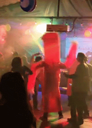 简单易上手、还原度还绝对低不到哪去的服装,也很快让充气人偶成为变装道具的热门款。如果没有舞动起来,旁人可能还真不知道这是个啥玩意,不过只要一扭起来,他们马上就会露出心领神会的微笑。