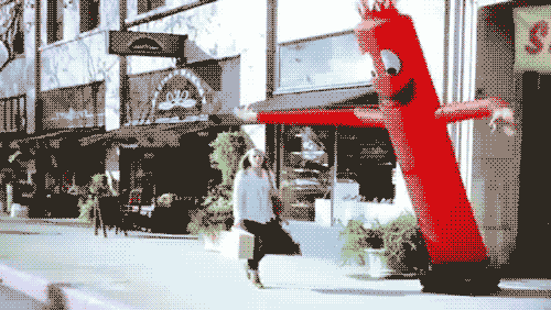这种没谱的动画总有各种新奇的办法找到观众笑点,充气人偶——或者说古怪的挥舞手臂的充气式摇摆管人,就是作为一段动画世界的广告出现的。