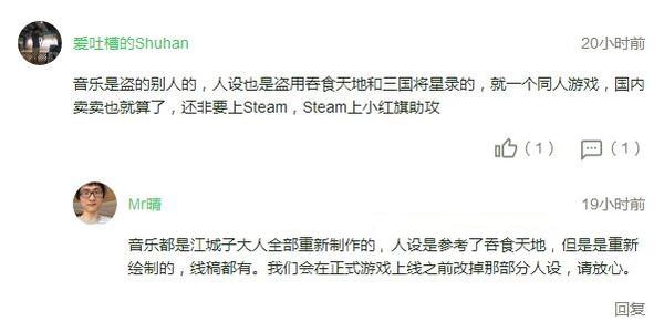对于此事,作者在众筹页面没有相关说明,面对玩家的质疑时,作者表示“游戏的人设是参考了《吞食天地》”。并未提及对《三国将星传》的素材借用。