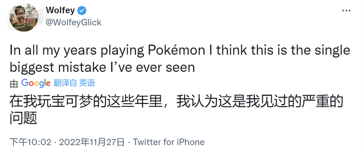 实际上早在两年前的《宝可梦剑/盾》中,就出现过这类摈弃随机要素的BUG,不过当时的问题仅限于毒系宝可梦,因此没能掀起太大的波澜。然而朱紫的情况有些特殊,如果官方真的使用了固定的随机数表,那么今后的玩家对战将会沦为先手必胜的滑稽场景,就连2016年宝可梦对战世界冠军Wolfey也感叹道,这是他玩宝可梦以来见过的最严重的问题。