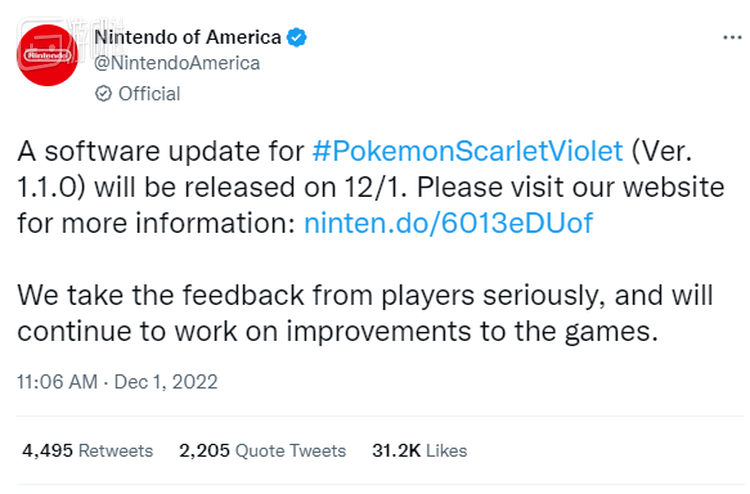 种种恶性BUG和优化问题的存在,造就了这款新作如今的口碑问题。自《宝可梦 朱/紫》发售至今,无数人就一直希望任天堂官方能就这些破坏游戏体验的问题给出一个说法——现在,任天堂倒是真就颇具诚意地道了歉。