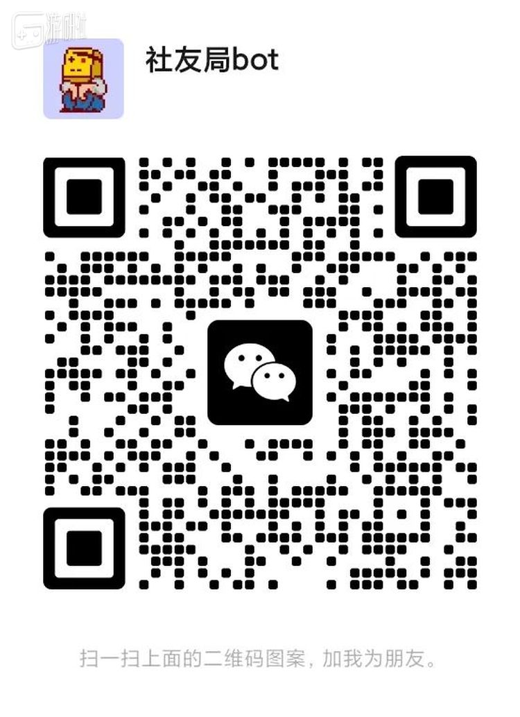 如果你对未来的游研社线下聚会也感兴趣,欢迎加入全国各地的社友群。长按下方二维码,添加“社友局bot”为好友,备注地区,我们的工作人员会帮助您进入当地群组。