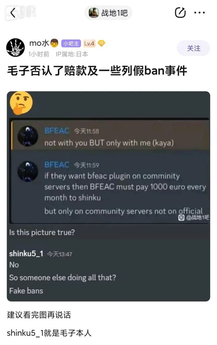 一位原BFBAN核心成员指出,封禁是假的,并非来自EA官方或FF本身,与其说是显灵,更像是抽风;亦有可能,是获取官服权限的漏洞已然泄露。