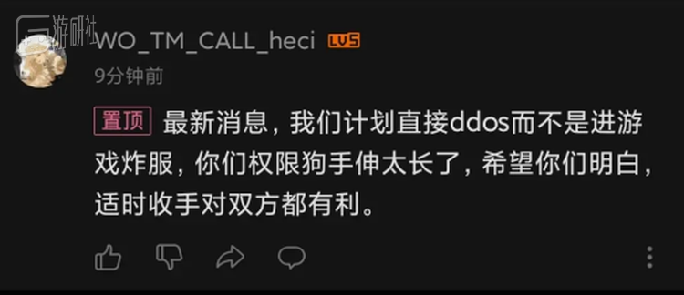 还是在25日下午,另一未知底细的“反外挂团体”号称要炸掉所有服务器,没有任何证据能够证明他们行动过。