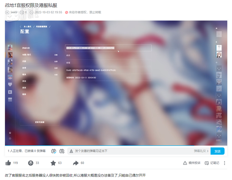 2022年10月3日,22在B站上传了一部视频。视频中,他利用服务器漏洞取得了官服的管理员权限,把自己调到了对面队伍,还修改了官服的服务器名称。