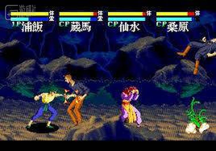 之后是游戏内容层面,在《街霸2》等众多2D格斗游戏大行其道的时代,财宝独创性地设计了4人大乱斗的模式,并且根据原作的设定,还在游戏中添加了打击技的相杀等系统,看着浦饭和仙水互相对射超大号灵丸,以及两个飞影对轰邪王炎杀黑龙波的景象,临场感妙不可言。