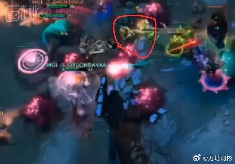 46分钟,蒙古队团战出现重大失误,在大优上高、几近胜利的时刻,Ame操刀的幻影刺客向兵线掷出了一把带着狂战斧特效的匕首,恰巧溅射到了敌方大团控潮汐。跳刀被断的潮汐原地空大,进而帮助中国队打出了一个1换5。一波将经济拉回,拥有了继续拉扯的空间。