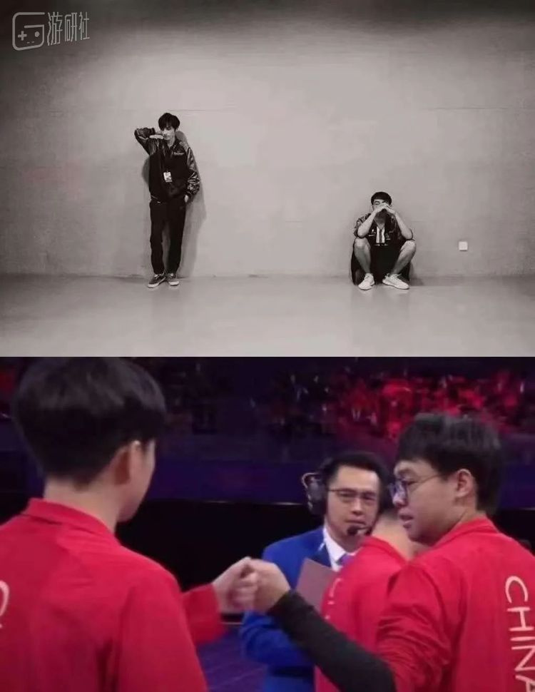 Ti9的时候,Ame和Maybe分隔两边,站在那一堵白墙旁。这一次,是穿着红衣的路垚选手和王淳煜选手击掌,浓郁低调的红色也在潋滟。