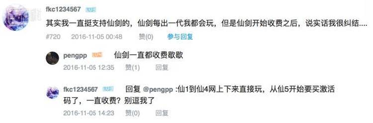“其实我一直挺支持仙剑的,仙剑每出一代我都会玩,但是仙剑开始收费之后,说实话我很纠结…..”。