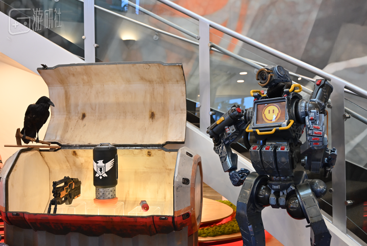 车库里,我们还能看见《泰坦陨落2》的喷绘,到了办公室,基本就是APEX的主体空间了。到处都是英雄的立牌,墙上也挂满了玩家们创作的同人作品。