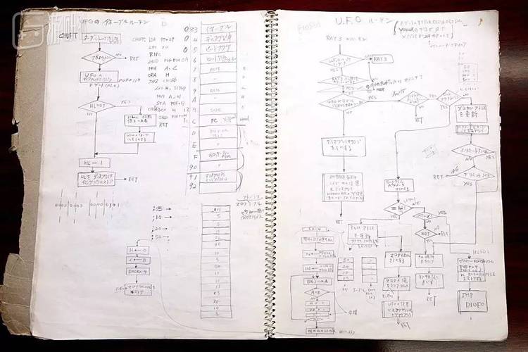 西角在设计《太空侵略者》绘制的电路和逻辑结构表,之前对《PONG》基板的仔细学习则是日后这些伟大成功必不可少的基础