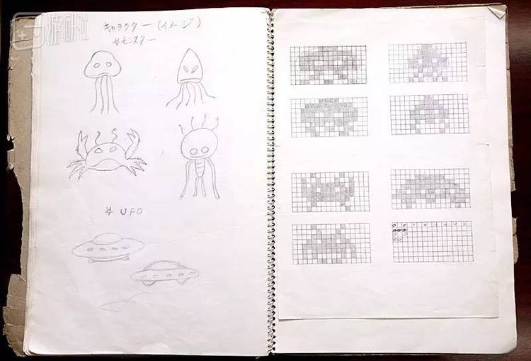 接下来就轮到角色设计了,但西角手里并没有现成的数字开发工具,他便用手里的光电子自己做了一套,当时的他也没有想到现在的笔形输入设备会如此普及。根据画面的整体大小和预想的角色尺寸,西角决定在画面上显示5x11,共计55个敌方角色。之后,他把每一种设计都做到游戏中,并用来确定哪种形象更为合适。在尝试过多种形象之后,人形士兵的形象最终脱颖而出。不过,西角没意识到自己的考虑有一个严重的隐。