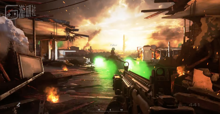 正如《现代战争2》中在白宫顶层释放绿色信号弹,阻止友军轰炸这一桥段——无论怎么截,都很难还原这段流程中那气势如虹、热血沸腾的高燃氛围。想“出片”,必须借助各种第三方模组来实现自由视角、主角隐身、UI消除等等效果,并且还要进行复杂的后期处理。