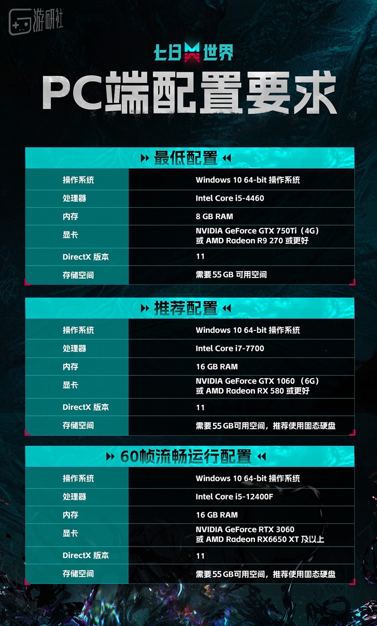 在此之前,官方已经开启了预下载和预创角活动,一并公布了游戏的具体PC端配置需求: