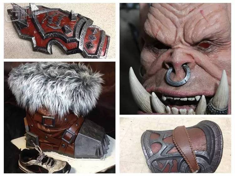 为了还原兽人服装的粗犷风格和原始材质,他在每一个细节都毫不马虎。仔细看这些特写图——无论是腕甲上精致的皮革,还是靴子上真实的动物毛皮,都是不计成本的真材实料。