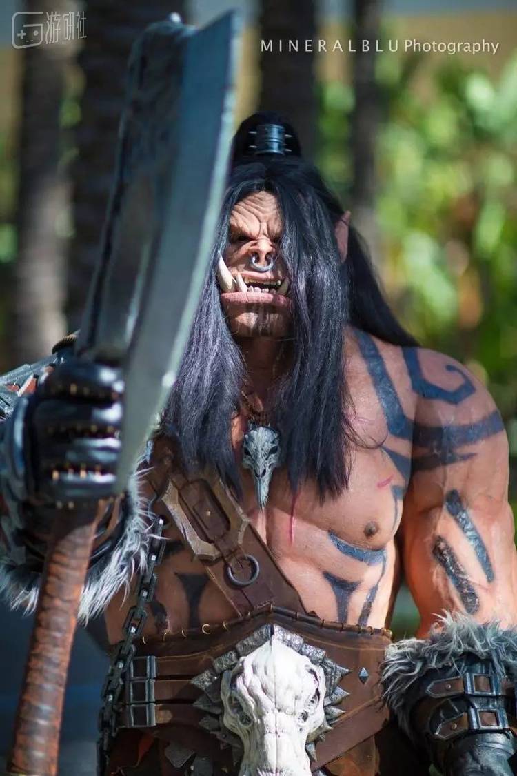 下面这张格罗姆·地狱咆哮的Cos出自今年的暴雪嘉年华,出演者是来自美国的Mike Biasi。他在三次元他的工作就是一名雕刻师,做过很多《魔兽世界》相关的雕塑作品。而这次Cosplay的道具——包括地狱咆哮的面罩,都也是他耗费了大量心血自制的,这些道具单独摆出来每件都是艺术品。
