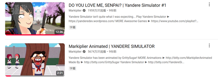 在二次元文化的底色尚未彻底渗透互联网的2014年,《病娇模拟器》的游戏理念足够猎奇,也足够有趣。Alex和他的游戏赶上了Youtube黄金时代的尾声,频繁现身于各位油管博主的视频当中,千万播放的爆款视频层出不穷,算是将“病娇”的含义推广给了广大欧美路人观众。