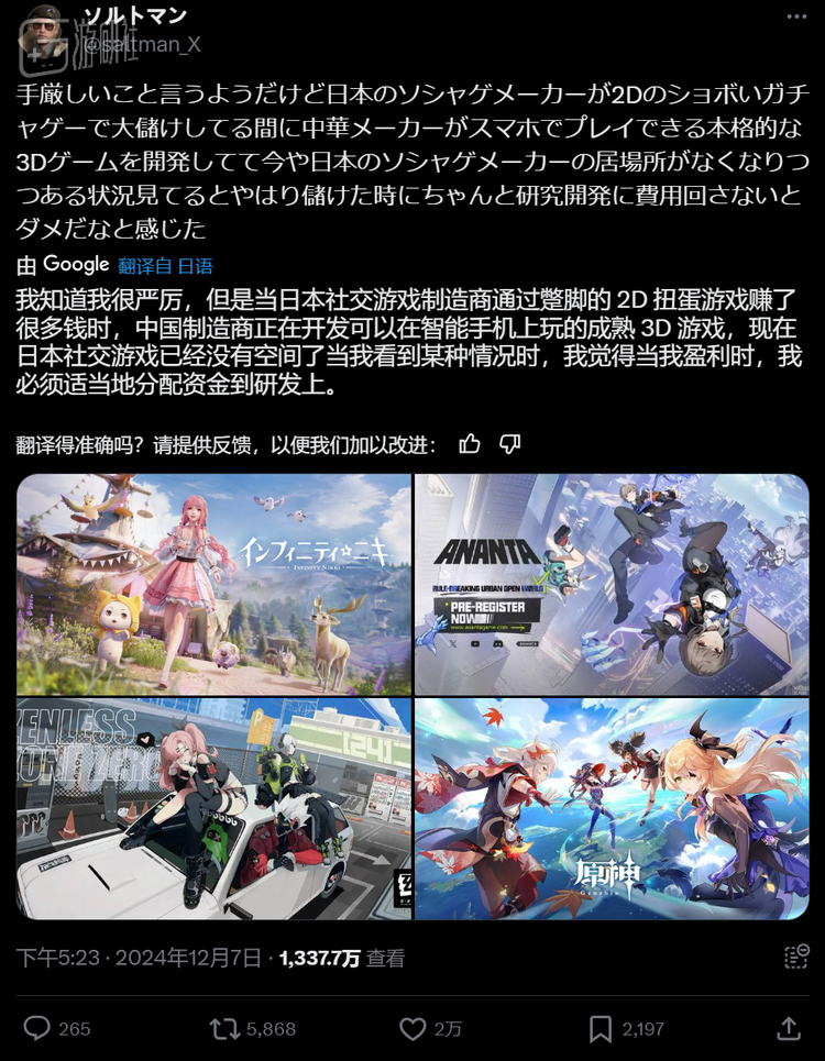 真要说的话,现在才讨论这样的话题都显得日本玩家们有些后知后觉了。