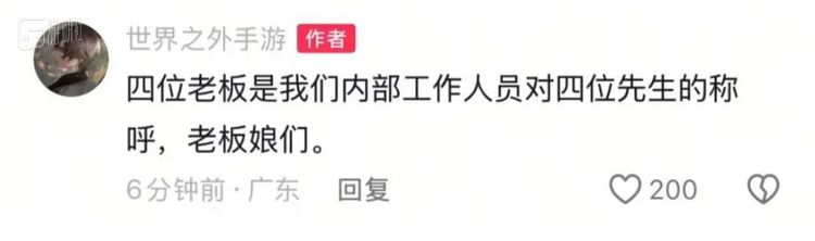 但这份声明又引发了玩家巨大的不满,因为《世界之外》在其中将四位男主角称为“四位老板”,并在评论里解释说,这是内部对“四位先生”的称呼。