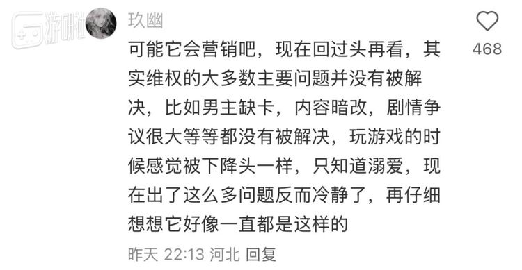 诸如“AI作画”“疑似抄袭”“半成品”等等的争议,会被解读成“没赚钱,请不起画师”,一半是乐子,另一半则将关注更多放在了游戏的“未来可期”上,甚至会在过程中产生一种“养成感”。