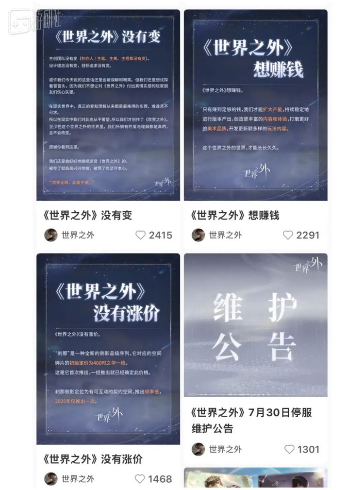 或许这也是为什么在回应玩家质疑时,《世界之外》解释完主要矛盾,要把重点放在了“(团队)没有变”上。