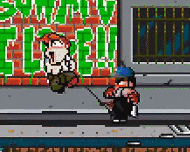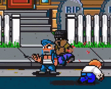 游戏的战斗系统比当年的《热血物语》要丰富不少,拳、脚、抓投、防御、必杀技都有各自的按键,再结合方向键会产生各种各样的招式。如果再算上使用道具等互动键,想愉快体验这个游戏,我建议还是用手柄比较好。游戏本身也支持手柄震动,当你撞墙倒地,或者被电击等时候就会感受到震动反馈。